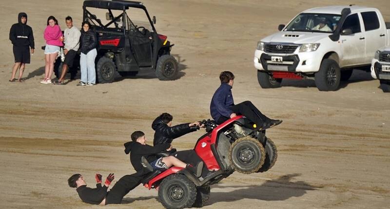 De un lado, la postal perfecta: playa, verano, redes sociales y descanso. Del otro, apenas unos metros más allá, cuatriciclos manejados como misiles, UTV sobrecargados y camionetas que confunden los médanos con pistas de carrera.